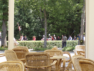 En van het drielandenpunt, leuk plekje maar de koffie was niet te zuipen. Wel leuk entertainment van een groep neo-middeleeuwers uit het oosten.