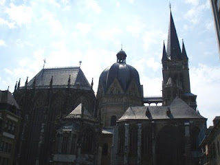 In Aken aangekomen blijkt dat er best wel wat te doen is aldaar, vooral als je een bejaarde leeftijd hebt bereikt. Vermoed ik want er waren vele van die leeftijdsgroep aanwezig. Vooral in het gebied rond de kathedraal en de schatkamer. En dat is lastig want deze groep mensen doen aan groepsvorming en bezetten daarbij de gehele stoep. Ook kijken sommige exemplaren je heel boos aan als je snel voorbij loopt. Minpuntje.