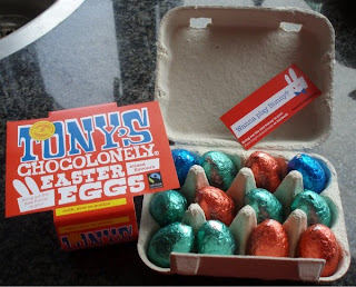 Had het vrij recent, op twitter, met Sonnetje over het nut van chocolade. Met name in de vorm van eitjes. Toen kwam het onderwerp op goede chocolade. Waarmee wij bedoelen dat deze gemaakt is met slaafvrije cacao en bijbehorende ingrediënten. Waardoor het gesprek op Tony’s komt. En ik mij af ging vragen waar dat in stadje P te verkrijgen is. Ik dacht hierbij aan de wereldwinkel. Later dacht ik aan Verkade, want die doen ook aan FairTrade tegenwoordig. Zag ik aan de chocoladeletters afgelopen oktober/november/december. Nu was ik vandaag in een plaatselijke super en wat ziet mijn oog? Netjes geparkeerd naast heel veel foute chocolade. Jawel, Tony’s chocolonely easter eggs. Als bewijs meteen doosje gekocht.
