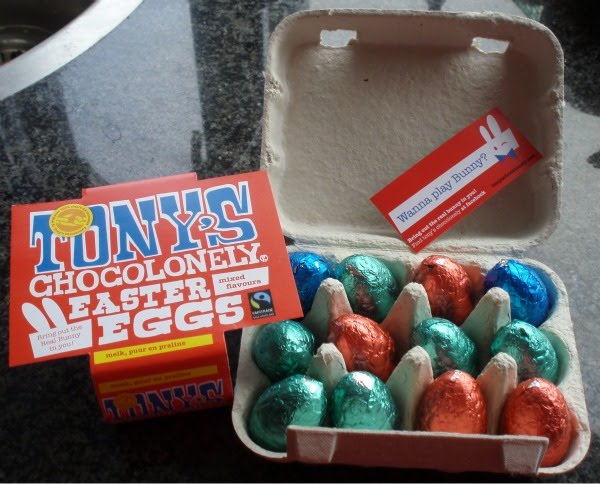 Had het vrij recent, op twitter, met Sonnetje over het nut van chocolade. Met name in de vorm van eitjes. Toen kwam het onderwerp op goede chocolade. Waarmee wij bedoelen dat deze gemaakt is met slaafvrije cacao en bijbehorende ingrediënten. Waardoor het gesprek op Tony’s komt. En ik mij af ging vragen waar dat in stadje P te verkrijgen is. Ik dacht hierbij aan de wereldwinkel. Later dacht ik aan Verkade, want die doen ook aan FairTrade tegenwoordig. Zag ik aan de chocoladeletters afgelopen oktober/november/december. Nu was ik vandaag in een plaatselijke super en wat ziet mijn oog? Netjes geparkeerd naast heel veel foute chocolade. Jawel, Tony’s chocolonely easter eggs. Als bewijs meteen doosje gekocht.