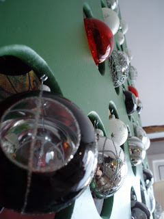 In de weerspiegeling van de poolbalkerstbal kunt u zien hoe goed mijn spijkerbroek mij zit na, wederom, een kilo verlies van het lichaamsgewicht. Verder valt u natuurlijk op de artistiekerige wijze waarop ik de MDFboom heb weergegeven. U mag er wat van zeggen in de comments, hoeft niet.